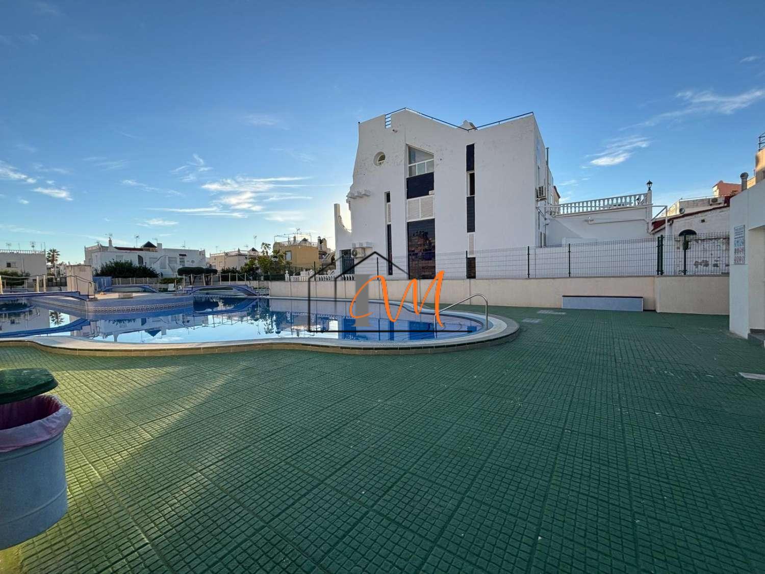 The property offers a bright and functional layout, with excellent orientation that ensures natural light throughout the day. It includes a storage room for extra convenience and access to a communal swimming pool, perfect for family enjoyment.