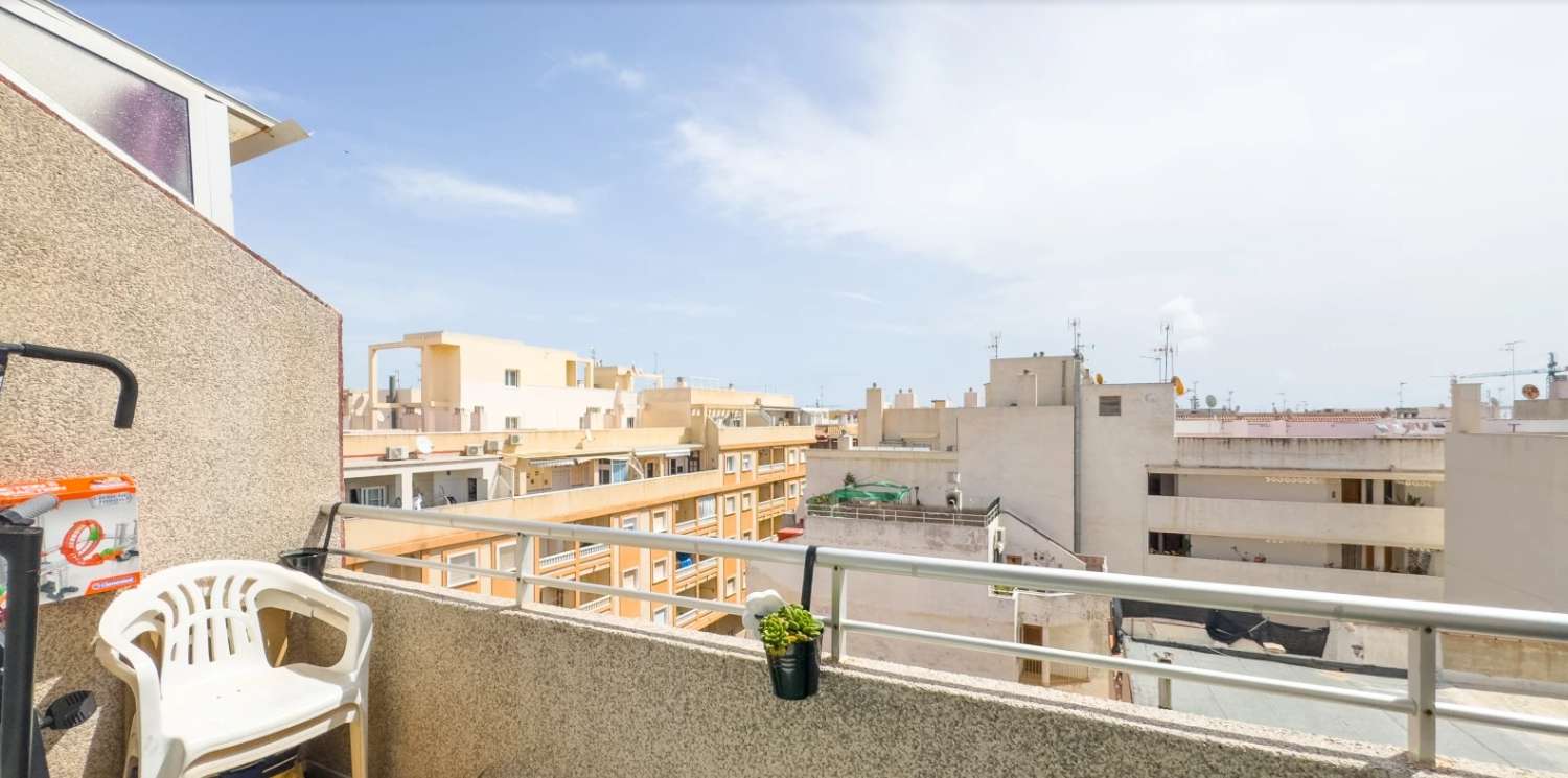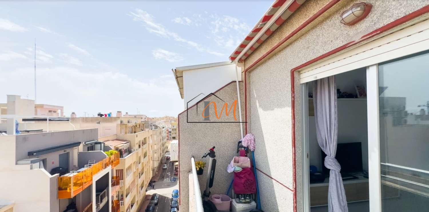 Descubra este encantador ático de 72 m² completamente reformado y amueblado, ubicado en una de las zonas más cotizadas de Torrevieja, a escasos pasos de la Playa del Cura. La vivienda ofrece una distribución funcional con dos amplios dormitorios, un baño moderno y una luminosa zona de estar que se abre a una cocina equipada con electrodomésticos de calidad.