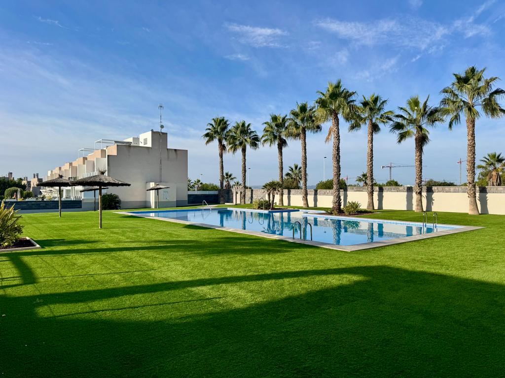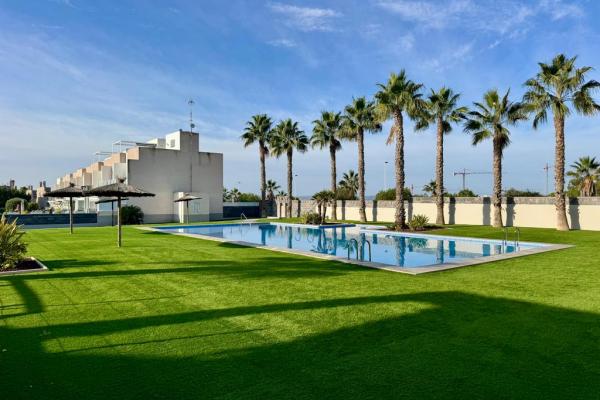 La urbanización cuenta con una piscina comunitaria, ideal para relajarse y disfrutar del buen clima. La zona es residencial y tranquila, perfecta tanto para vivir todo el año como para estancias vacacionales, con supermercados, restaurantes y servicios a pocos minutos.