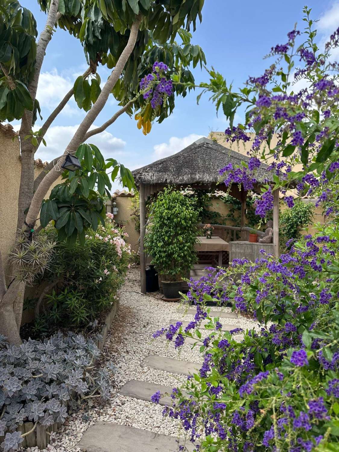 Excepcional chalet independiente de 109 m² con diseño funcional y estilo acogedor, ideal para familias que buscan confort y privacidad. La vivienda principal cuenta con tres amplias habitaciones, dos baños completos, cocina equipada y un luminoso salón-comedor. En la misma parcela se encuentra un estudio independiente de 64 m², compuesto por una habitación, un baño y cocina completa, perfecto para invitados, alquiler o como espacio de trabajo.
